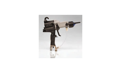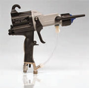 • This gun reduces operating costs and material usage. Fluid remains grounded in the gun, no isolation system is needed for operation.